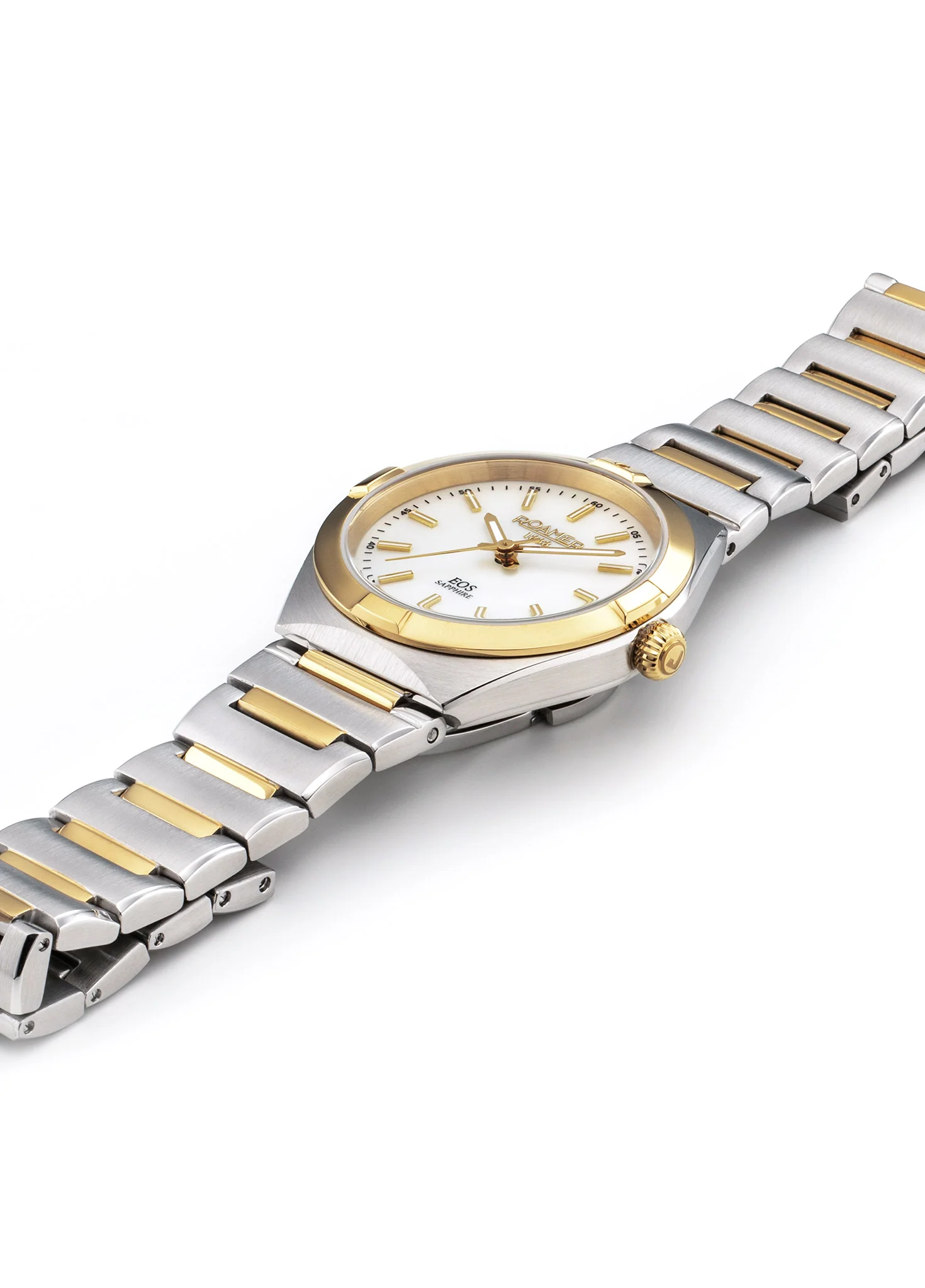 EOS Classic 34mm Quartz Three-Hand White MOP Dial Two-Tone Bracelet Sapphire glass Stainless Steel swiss watch